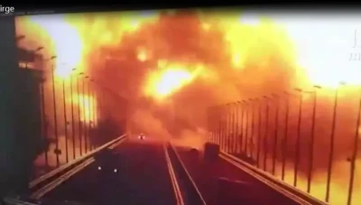 بالفيديو.. لحظة انفجار قطار جسر القرم وسط استنفار روسي كبير